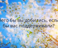 Недавно я задумалась — могла ли я бы так изменить свою жизнь, так продвинуться вперёд, если бы меня никто не поддерживал? Дело в том, что в реальной жизни было постоянно так, что мы жили вдали от друзей, родственники нас критиковали и…